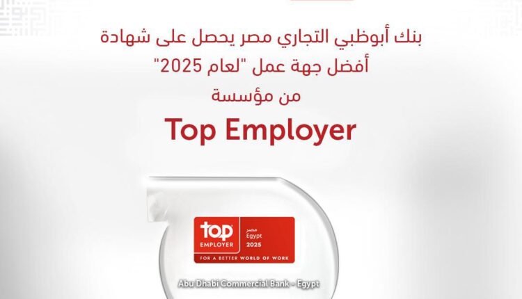 بنك أبوظبي التجاري مصر يحصل على شهادة “أفضل جهة عمل” من المؤسسة العالمية “TOP EMPLOYER”