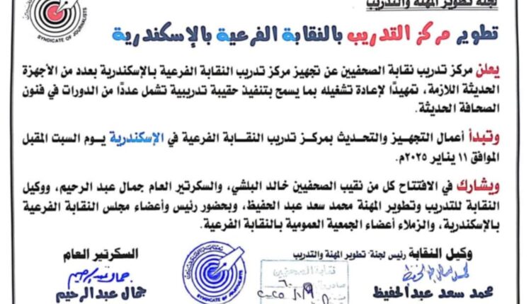 📌 وصرحت شيرين العقاد وكيل النقابة الفرعية، لـ القاهرة 24، أن تحديث مركز تدريب النقابة الفرعية بالإسكندرية خطوة مميزة تستحق الإشادة، فهي تعكس اهتمام النقابة بتطوير مهارات الصحفيين وتوفير بيئة تدريبية متكاملة تُواكب متطلبات الصحافة الحديثة، ومثل هذه المشاريع تُعد استثمارًا حقيقيًا في مستقبل المهنة وتعزيز قدرات الزملاء.