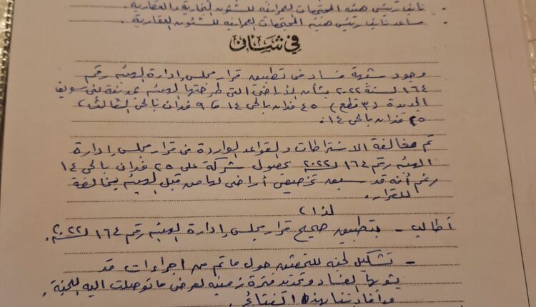 بشأن وجود شبهة فساد في تطبيق قرار مجلس إدارة الهيئة رقم 164 لسنة 2022، وذلك في الأراضي التي طرحتها الهيئة بمدينة بني سويف الجديدة بشأن طرح ثلاث قطع أراض ( 45 فدان بالحي 14 & 9 فدان بالحي الثالث & 25 فدان بالحي 14) وتم مخالفة الاشتراطات والقواعد الواردة بقرار مجلس إدارة الهيئة رقم 164 لسنه 2022 والذي قد تضمن ما يلي ” أنه فى حالة التزاحم والتساوي فى العرض المالي فإن الأفضلية للشركات التى لم تحصل على قطع أراضي من قبل” وقد تساوت جميع العروض المالية والفنية بين الشركات، وإحدى هذه الشركات سبق لها تخصيص أراضٍ من قبل الهيئة تقدمت للحصول علي القطع الثلاثة .