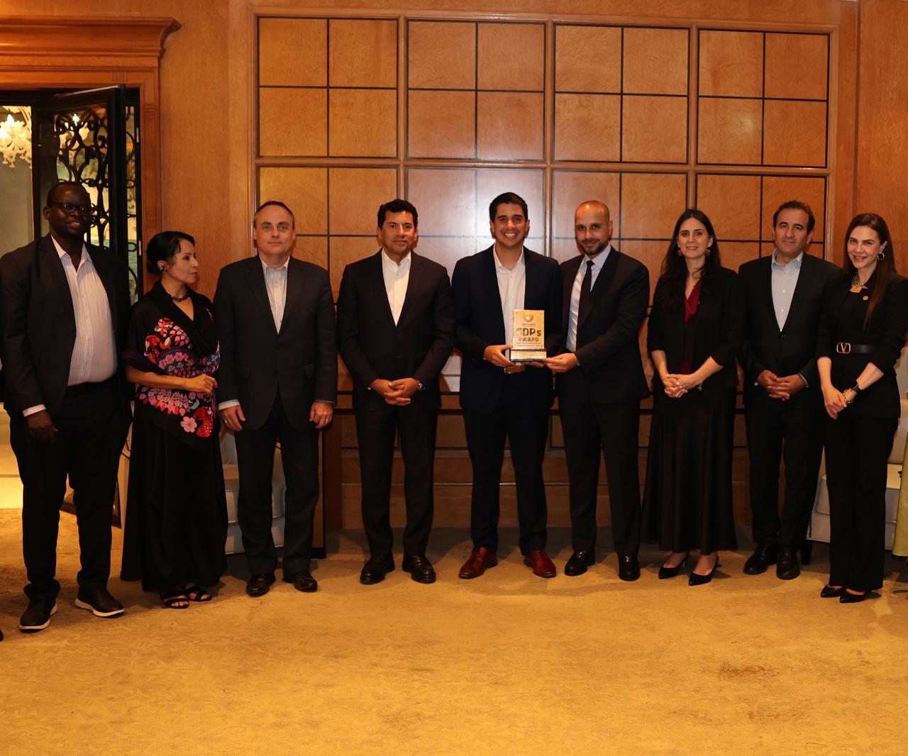 في ختام الأمسية، قام الدكتور محمد زيادة بتسليم جائزة حماة الأرض لرواد الاستدامة (SDPs) إلى الدكتور فيليبي بولييه، تقديرًا لجهوده في دعم الشباب والتنمية المستدامة. هذه الجائزة، التي أطلقتها مؤسسة حماة الأرض؛ تكريمًا للشخصيات الاستثنائية صاحبة الانجازات المستدامة الفريدة التي تسهم في تحقيق أثر عالمي ملموس نحو عالم أكثر استدامة.