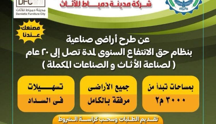 🔉🔉فرصة صناعية مميزة في قلب مدينة دمياط للأثاث هل تبحث عن أرض صناعية مجهزة بالكامل وبمساحات تبدأ من 3000 م²؟ دلوقتي الفرصة بين إيديك 👇